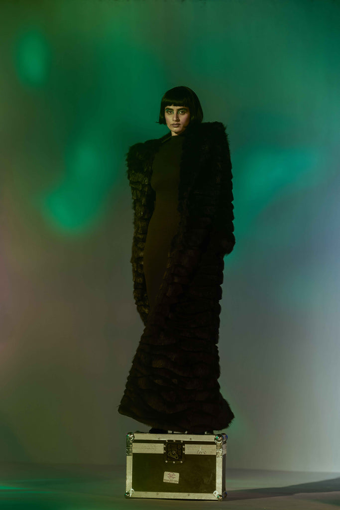 Introducing the La Strega Coat, a mesmerizing statement piece that exemplifies grandeur and sophistication. This exceptional outerwear is fashioned from the finest luxury fur, meticulously hand-formed into dynamic, wavy textures that create a visually captivating, tactile wonder. Crafted to exude a mob wife-like magnificence, this coat envelops you in an aura of authority and elegance. Ideal for any high-profile affair, the La Strega Coat guarantees you make an unforgettable entrance, exuding affluence and distinction. Don this remarkable creation and experience unparalleled opulence and the special allure that elevates you above the crowd.