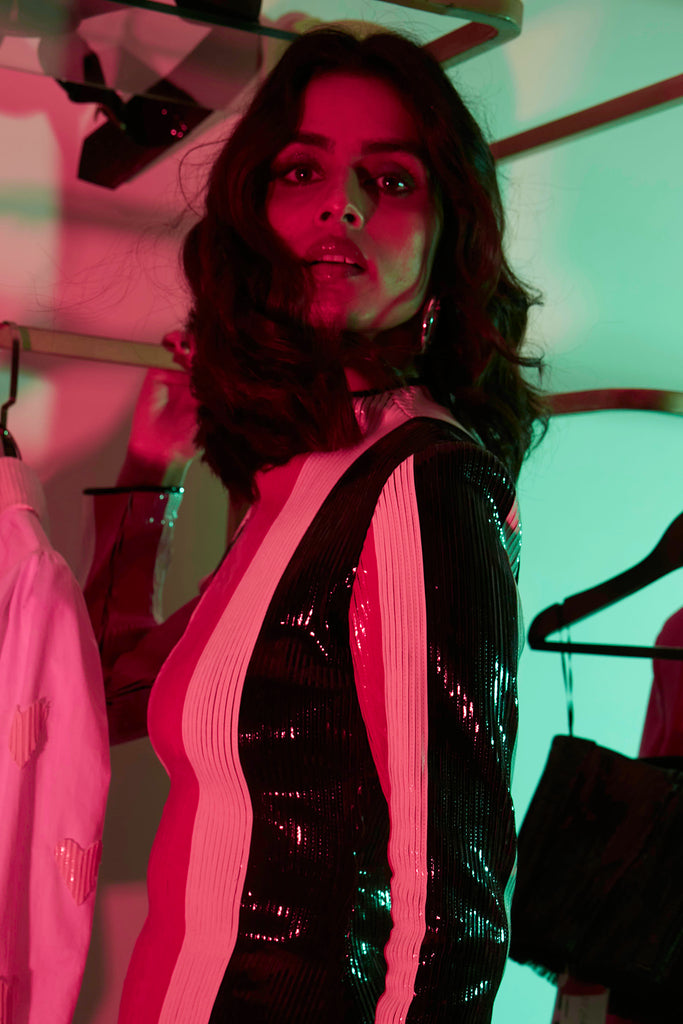 Let me ask you a question; What’s better than tight leather line applique? Let me answer that for you; Colour-blocked leather line applique! Look how the colours go so well with one another and a slight high neck just makes it oh-so-sophisticated. Man, there’s something about long sleeves and high-necks in a mini-dress.