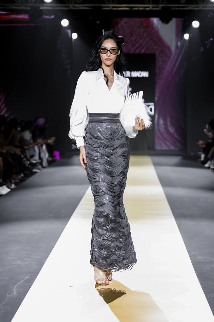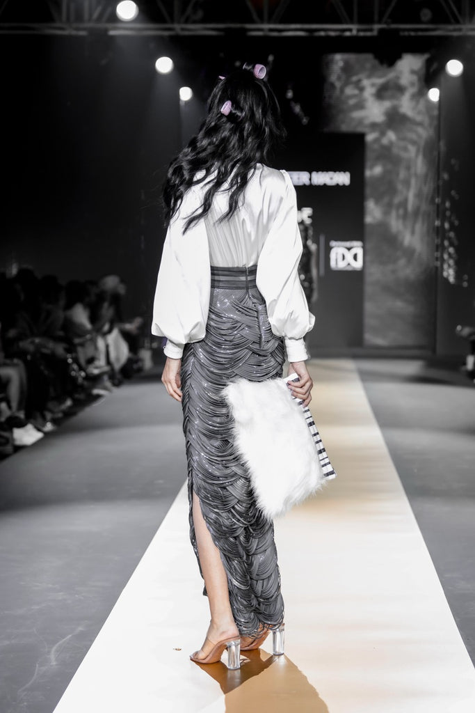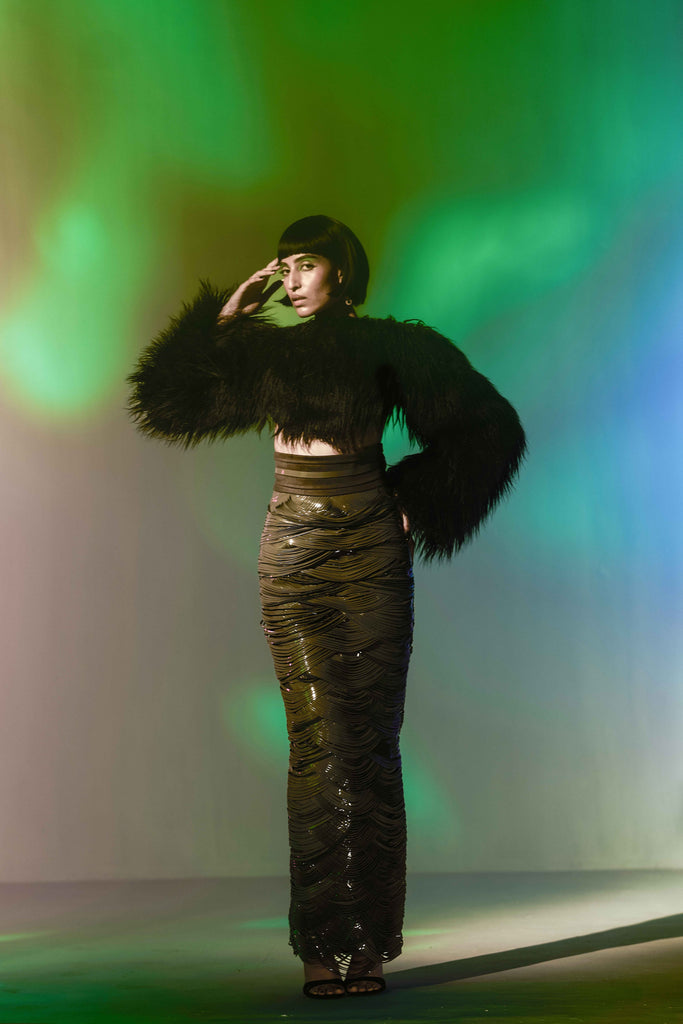 Introducing the La Senora Skirt, a masterpiece of opulent design and sophistication. This exquisite skirt is adorned with intricate faux leather appliqués, artfully arranged to resemble cascading chandeliers, creating a mesmerising, tactile experience for the wearer. The luxurious texture is complemented by a meticulously crafted waist belt, detailed with glossy leather accents for a secure and elegant fit. Perfect for those seeking to embody elegant celebrity vibes, the La Senora Skirt promises to elevate your ensemble, ensuring you garner endless compliments. Step into the spotlight with this stunning creation, and let your style exude grandeur and refinement at every turn.