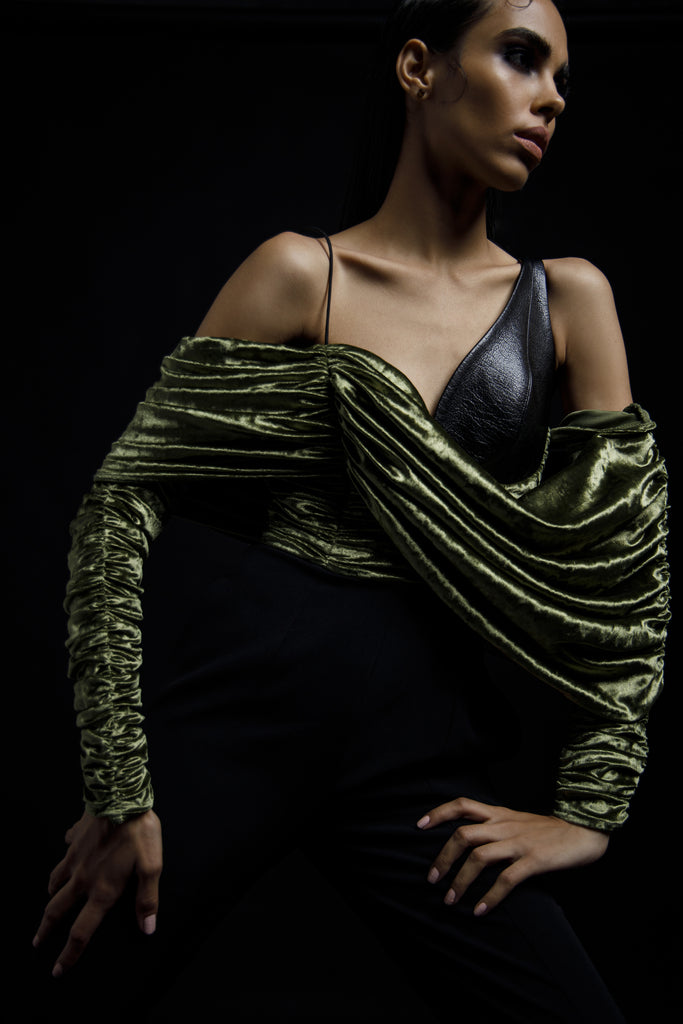 Material- Shimmer Velvet, faux leather, Crepe